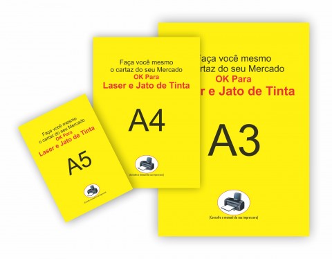 Em Papel 150g, amarelo dos dois lados.