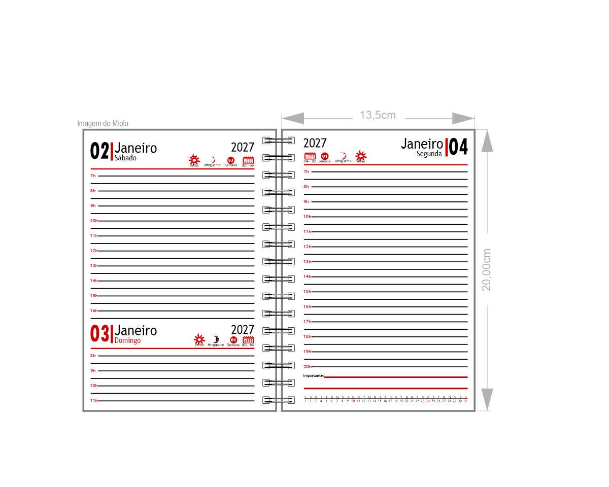 Miolo diários com 336 páginas, calendários de planejamento.
