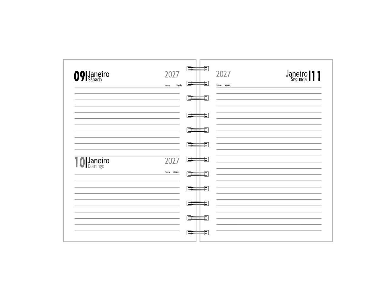 Miolo diário com 322 páginas, com 1 cor,  com calendários de planejamento 2027,2028,2029 .