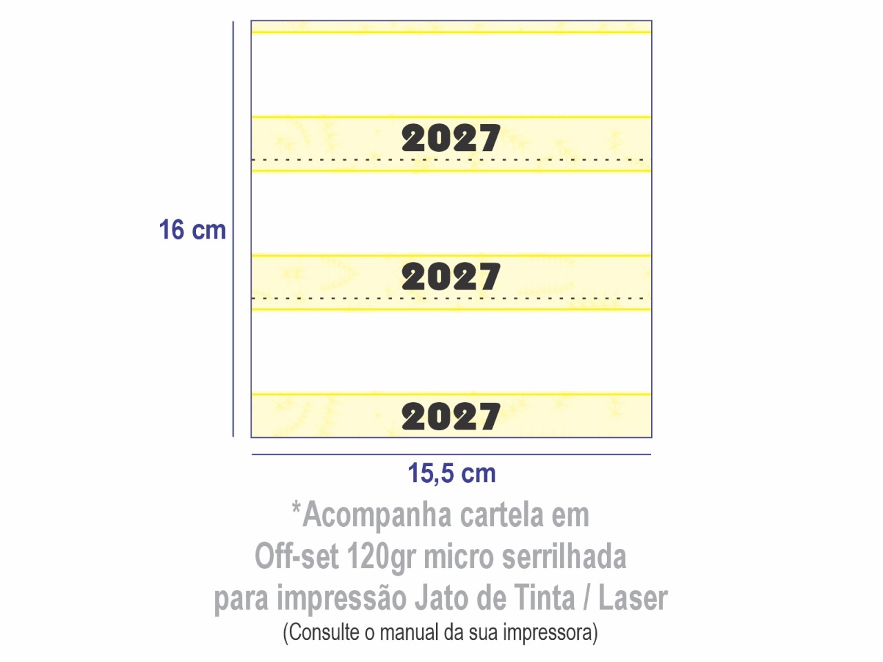 Acompanha cartela em Off-set 180gr micro serrilhada para imprimir em Jato de Tinta ou Laser (Consulte o manual da sua impressora)